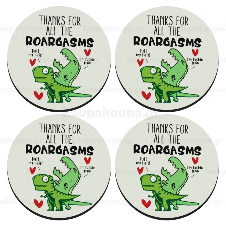 Thanks for all the ROARGASMS, SET of 4 round wooden coasters (9cm)