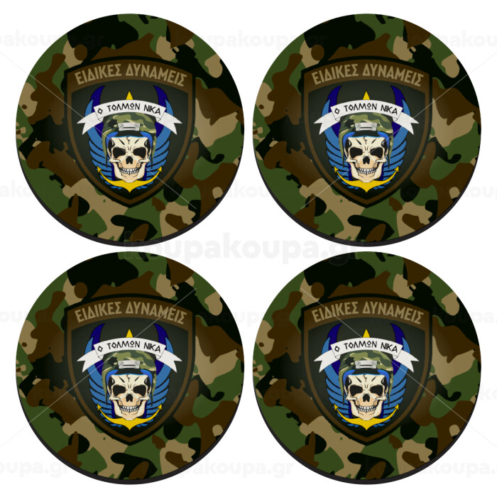 Hellas special force's, SET of 4 round wooden coasters (9cm)