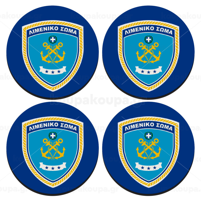 Hellenic coast guard, SET of 4 round wooden coasters (9cm)