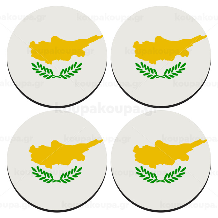 Cyprus flag, SET of 4 round wooden coasters (9cm)