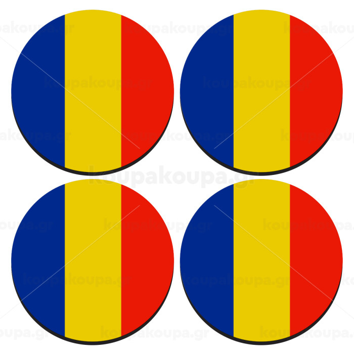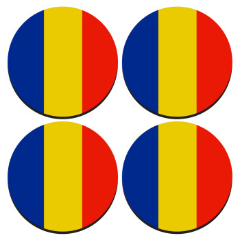 Romania flag, SET of 4 round wooden coasters (9cm)
