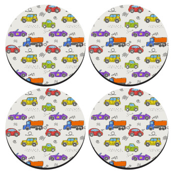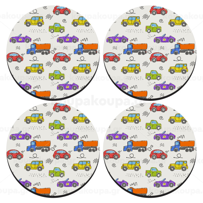 Colorful cars, SET of 4 round wooden coasters (9cm)