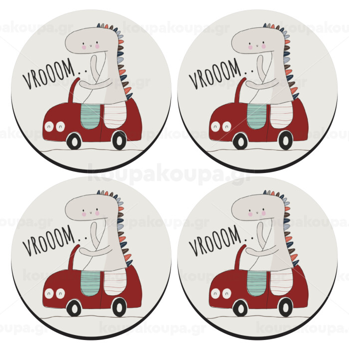 Βρουμ βρουμ, SET of 4 round wooden coasters (9cm)
