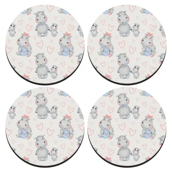 Hippo, SET of 4 round wooden coasters (9cm)