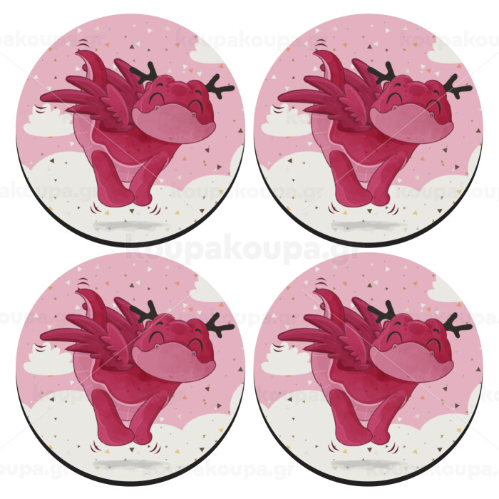 Flying Dyno, SET of 4 round wooden coasters (9cm)