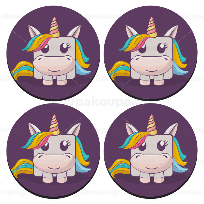 Unicorns cube, SET of 4 round wooden coasters (9cm)