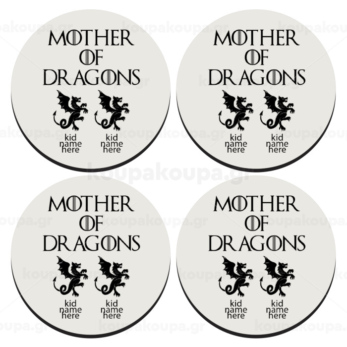 GOT, Mother of Dragons (με ονόματα παιδικά), SET of 4 round wooden coasters (9cm)