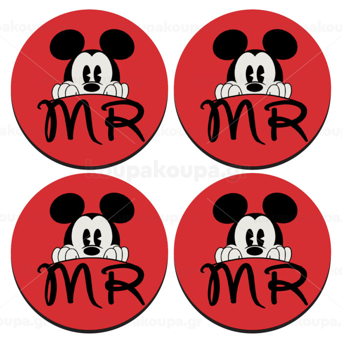 Mikey Mr, SET of 4 round wooden coasters (9cm)
