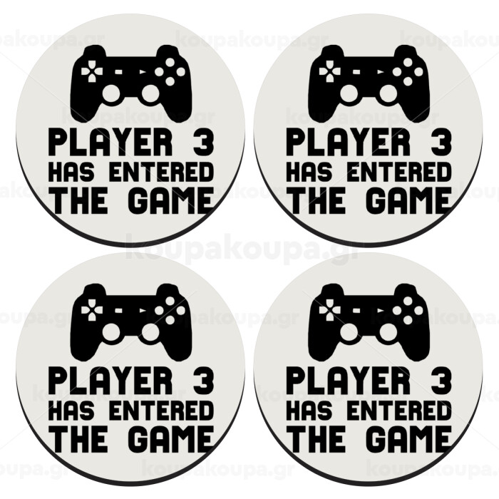 Player 3 has entered the Game, SET of 4 round wooden coasters (9cm)