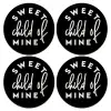 Sweet child of mine!, SET of 4 round wooden coasters (9cm)