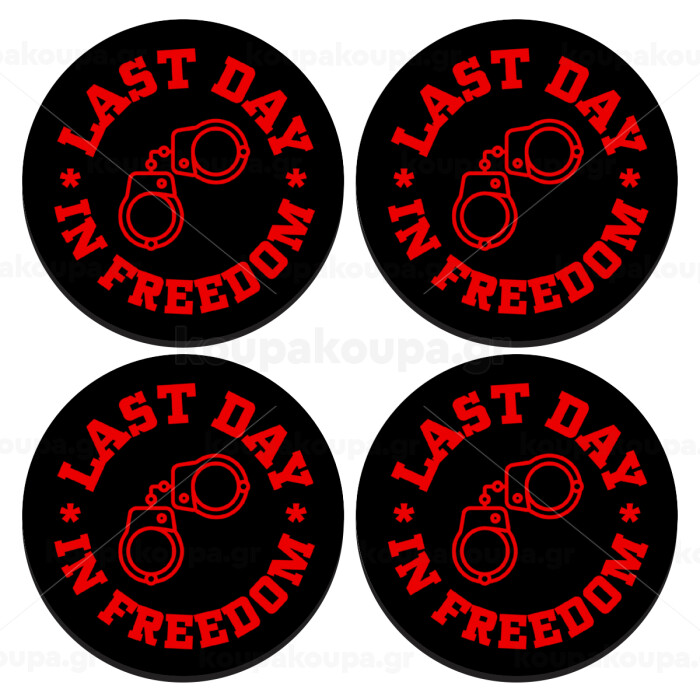 Last day in freedom, SET of 4 round wooden coasters (9cm)