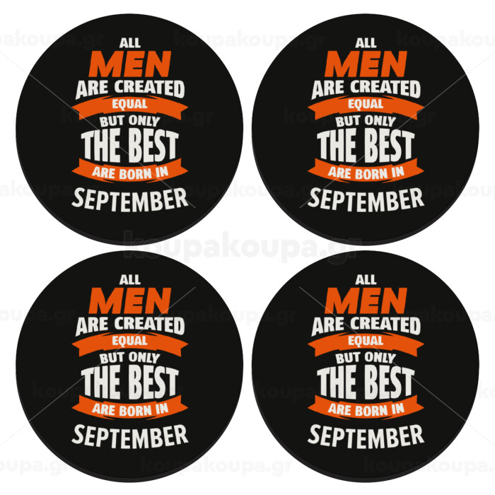 All men are created equal but only the best are born in September, SET of 4 round wooden coasters (9cm)