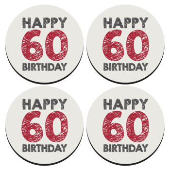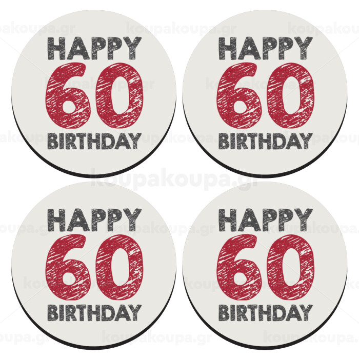 Happy 60 birthday!!!, SET of 4 round wooden coasters (9cm)