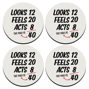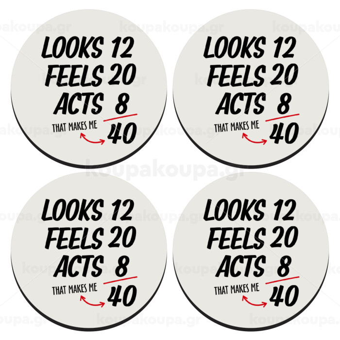 Looks, feels, acts LIKE your AGE, SET of 4 round wooden coasters (9cm)