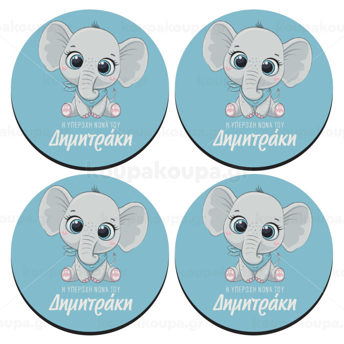 Η νονά μου, ελεφαντάκι γαλάζιο, SET of 4 round wooden coasters (9cm)