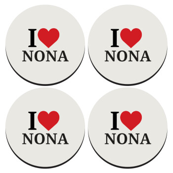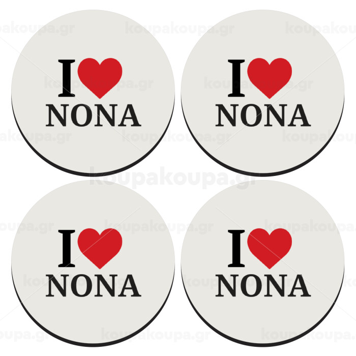 I Love ΝΟΝΑ, SET of 4 round wooden coasters (9cm)