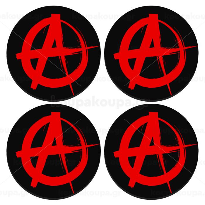Anarchy, SET of 4 round wooden coasters (9cm)
