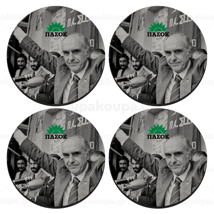 ΠΑΣΟΚ Ανδρέας, SET of 4 round wooden coasters (9cm)