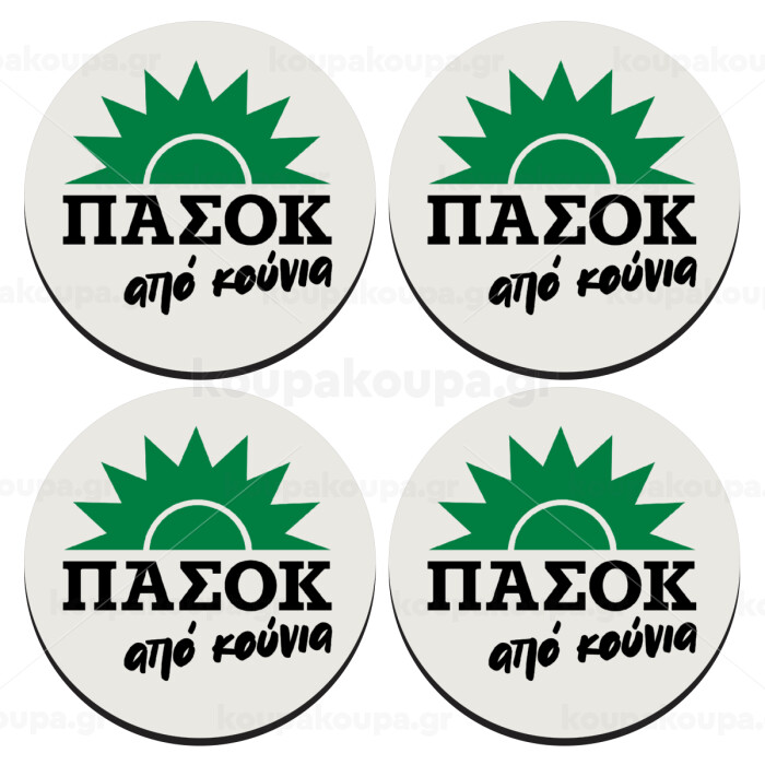 ΠΑΣΟΚ από κούνια, SET of 4 round wooden coasters (9cm)