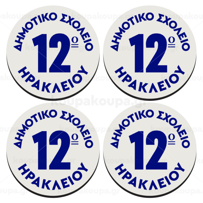 Έμβλημα Σχολικό λευκή, SET of 4 round wooden coasters (9cm)