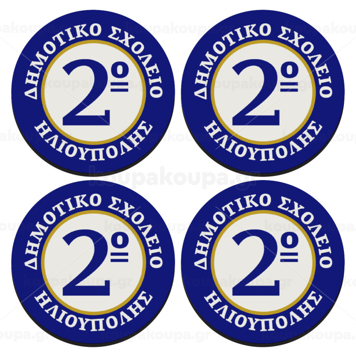 Έμβλημα Σχολικό μπλε/χρυσό, SET of 4 round wooden coasters (9cm)