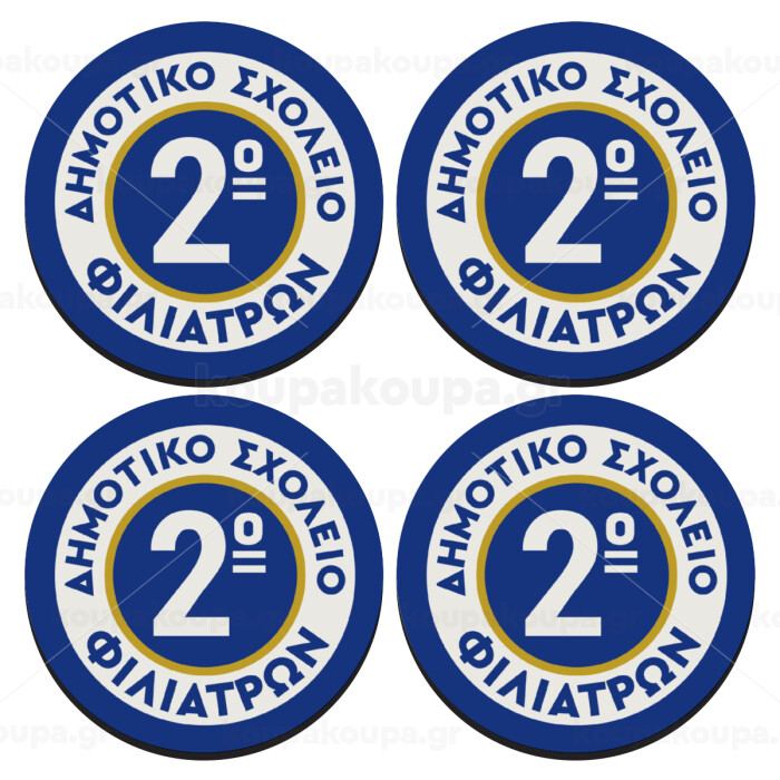 Έμβλημα Σχολικό μπλε κλασική, SET of 4 round wooden coasters (9cm)