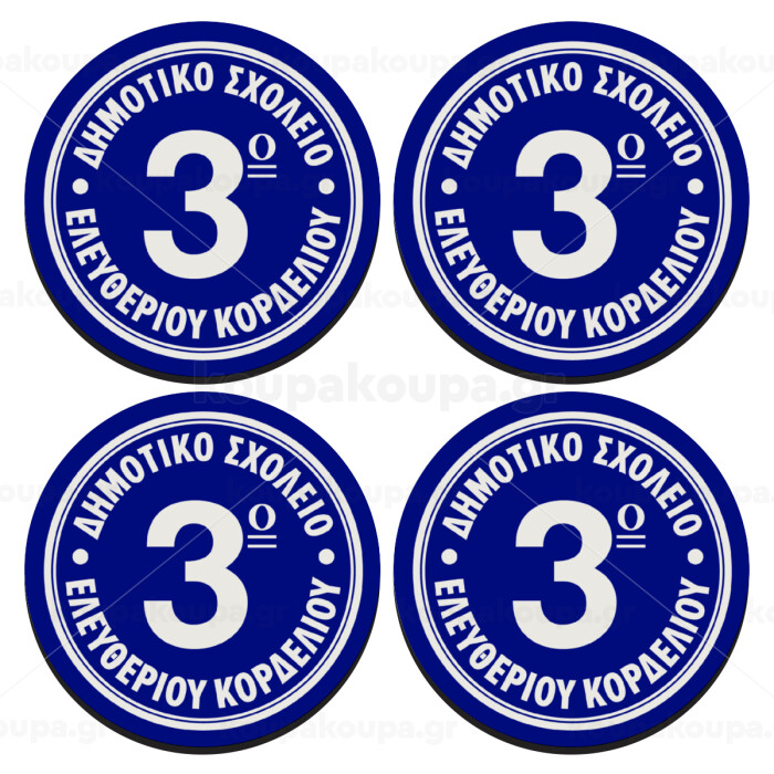 Έμβλημα Σχολικό μπλε, SET of 4 round wooden coasters (9cm)