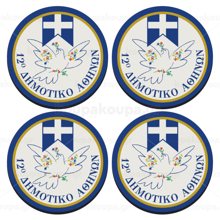 Σχολικό σήμα περιστέρι με δάφνες, SET of 4 round wooden coasters (9cm)