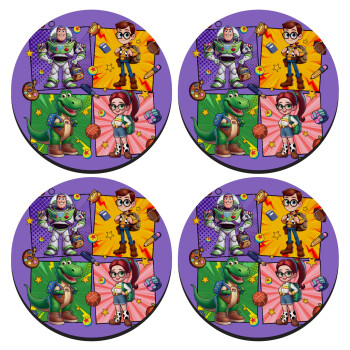 Back to the School Buzz & Friends, SET of 4 round wooden coasters (9cm)