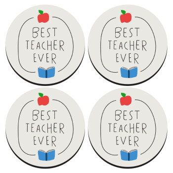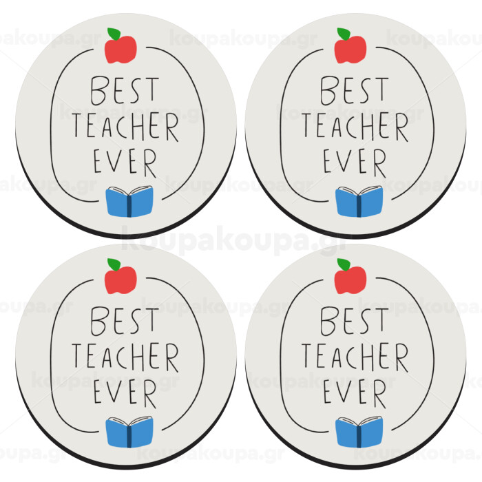 Best teacher ever, SET of 4 round wooden coasters (9cm)