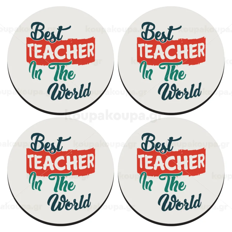 Best teacher in the World!, SET of 4 round wooden coasters (9cm)