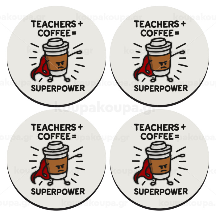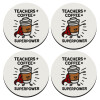 Teacher Coffee Super Power, SET of 4 round wooden coasters (9cm)