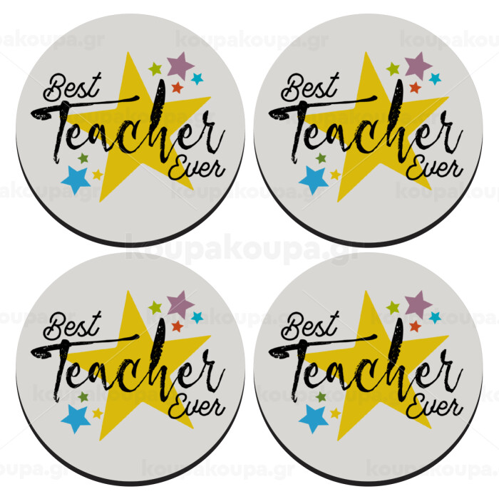 Teacher super star!!!, SET of 4 round wooden coasters (9cm)