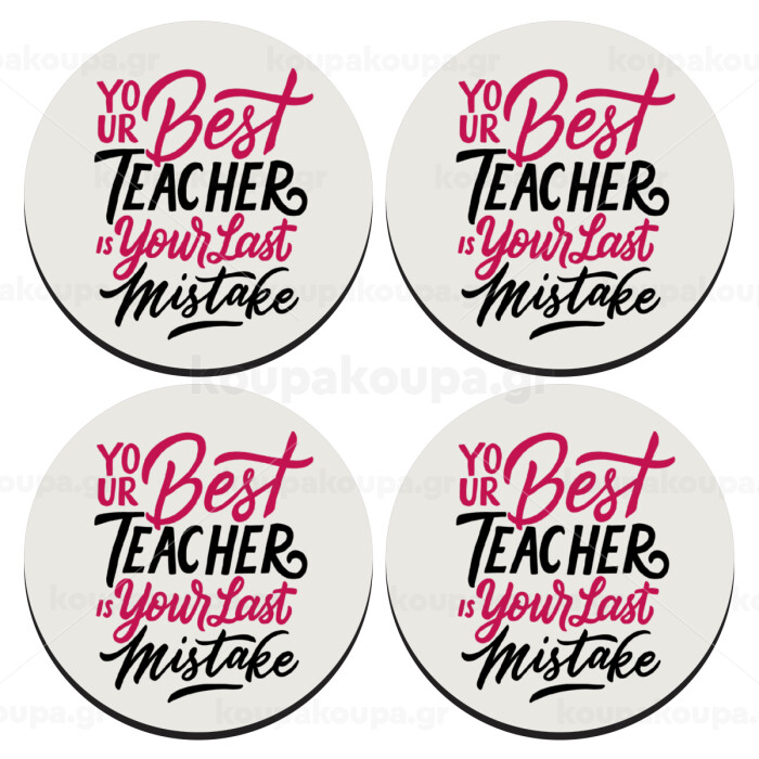 Typography quotes your best teacher is your last mistake, SET of 4 round wooden coasters (9cm)