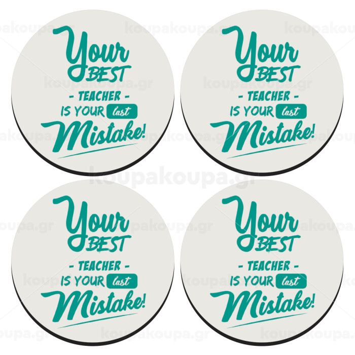 Your best teacher is your last mistake, SET of 4 round wooden coasters (9cm)