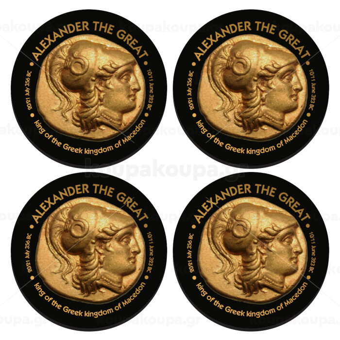 Alexander the Great, SET of 4 round wooden coasters (9cm)