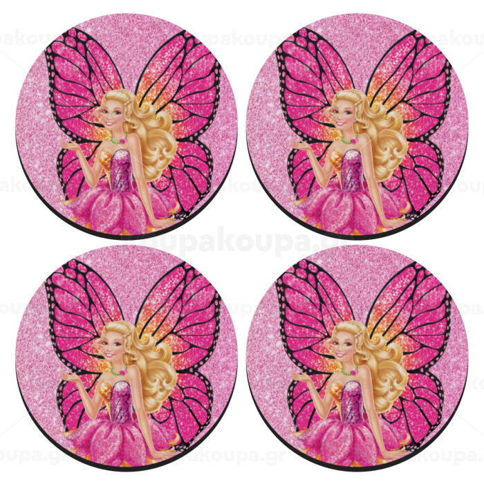 A fairy Barbie, SET of 4 round wooden coasters (9cm)