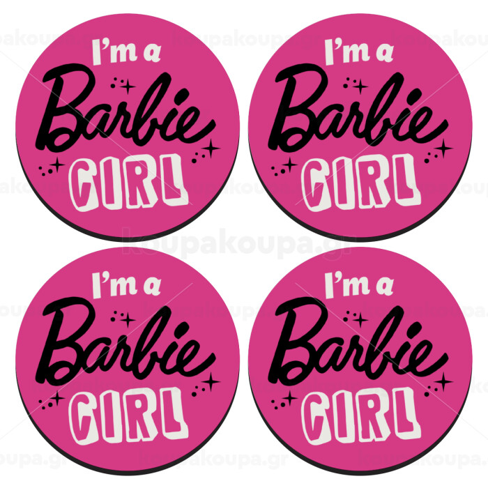 I'm Barbie girl, SET of 4 round wooden coasters (9cm)