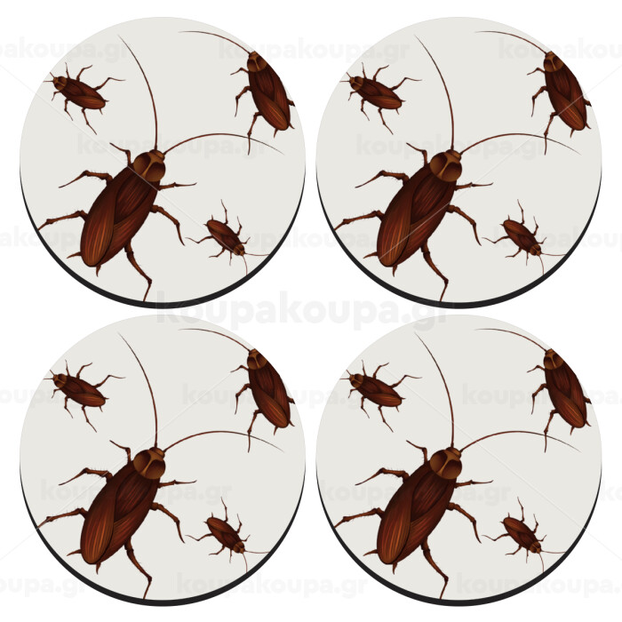 Blattodea, SET of 4 round wooden coasters (9cm)