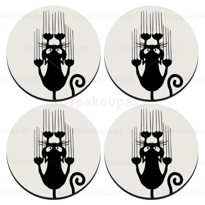 Cat scratching, SET of 4 round wooden coasters (9cm)