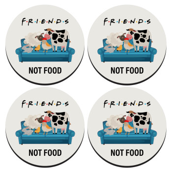 friends, not food, SET of 4 round wooden coasters (9cm)