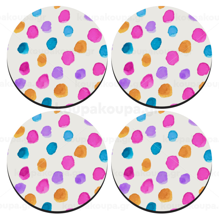 Watercolor dots, SET of 4 round wooden coasters (9cm)