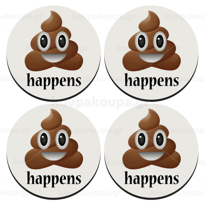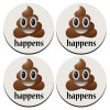 Shit Happens, SET of 4 round wooden coasters (9cm)