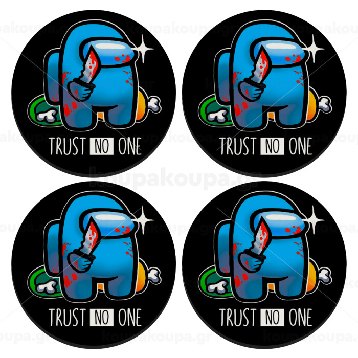 Among Trust no one, SET of 4 round wooden coasters (9cm)