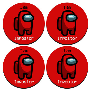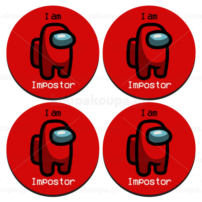 Among US i am impostor, SET of 4 round wooden coasters (9cm)