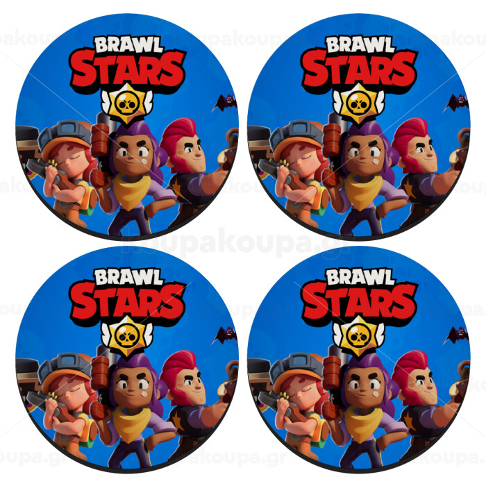Brawl Stars Blue, SET of 4 round wooden coasters (9cm)