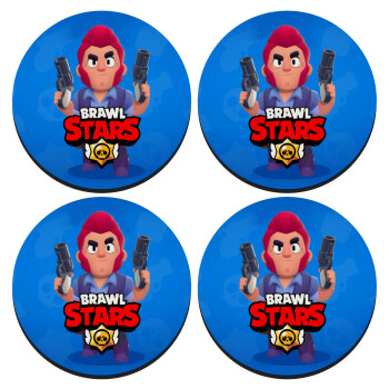 Brawl Stars Colt, SET of 4 round wooden coasters (9cm)