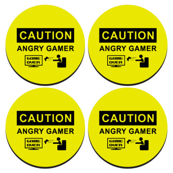 Caution, angry gamer!, SET of 4 round wooden coasters (9cm)