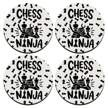 Chess ninja, SET of 4 round wooden coasters (9cm)