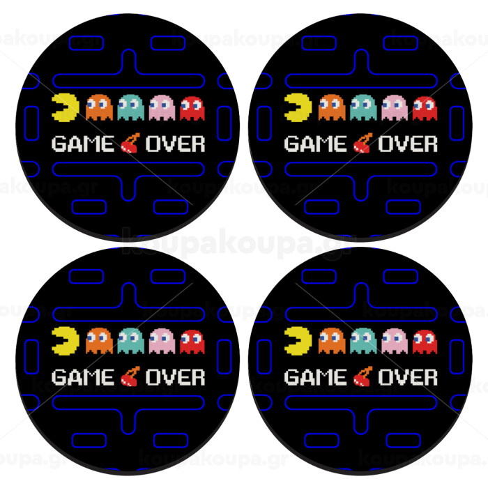 GAME OVER pac-man, SET of 4 round wooden coasters (9cm)